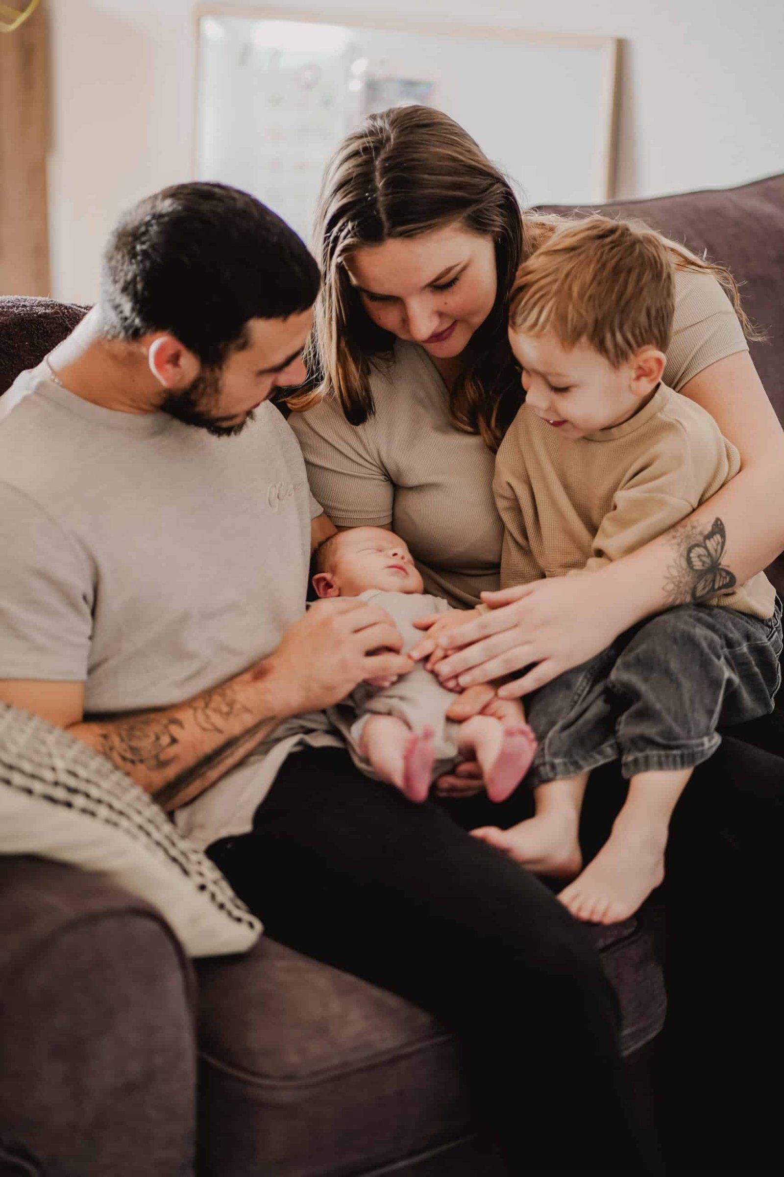 Des portraits du bébé seul, ainsi que des photos avec les parents et la fratrie
